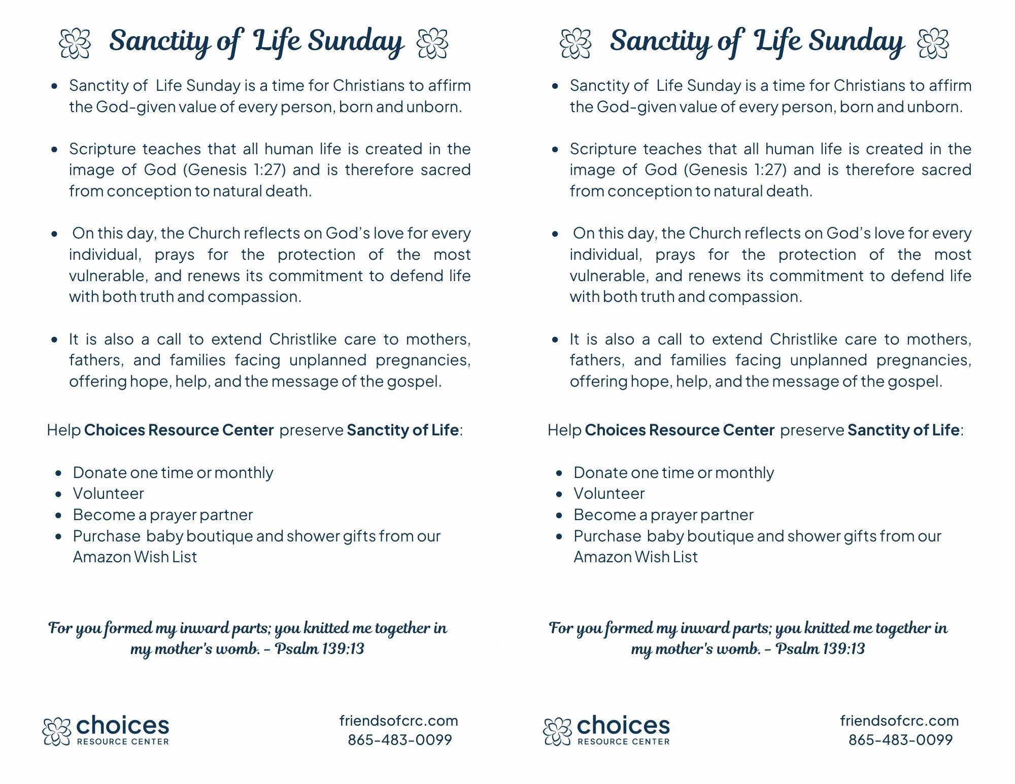Choices would love to partner with your church to share how we support moms who choose life for their babies. We can provide: